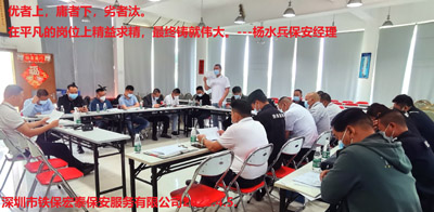 我司鐵保宏泰深圳保安公司在總經(jīng)理王虎的帶領(lǐng)下召開安保主管及隊長等管理級人員會議,會議中大家暢所欲言,集思廣益,共同建造美好鐵保宏泰安保護(hù)衛(wèi)。