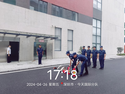 我司鐵保宏泰深圳保安公司安保今日國際分隊舉行消防演練。