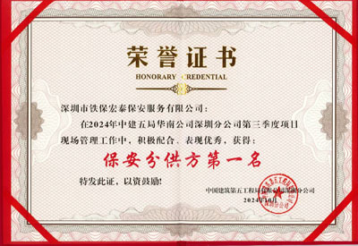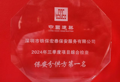 祝賀我司鐵保宏泰榮獲中建五局2024年度保安分供方第一名