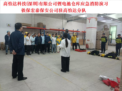 2024年11月28日高怡達科技(深圳)有限公司鋰電池倉庫應急消防演習 ,鐵保宏泰保安服務公司駐高怡達分隊。高怡達科技(深圳)有限公司成立于2004年11月05日,注冊地位于深圳市龍崗區橫崗街道六約金塘工業區勤富路30號B、C棟,法定代表人為林尤澳。經營范圍包括無。^生產經營各款電源供應器、變壓器、馬達組件、電源插頭、線圈、電源組件、插頭電源線、穩壓電源、紫外光牙刷頭消毒器、LED燈板、牙刷玻璃杯、機器人、自動化設備、機械及機電設備、制造管理信息化系統。上述產品的研發設計與技術服務。