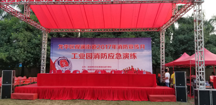我司鐵保宏泰保安公司駐客戶京泉華客戶服務區開展了龍華區觀瀾街道2017年消防宣傳月工業區消防應急演練活動?;顒又形宜?2名保安員認真、專業的消防演練深受公安、消防部分的認可和好評。