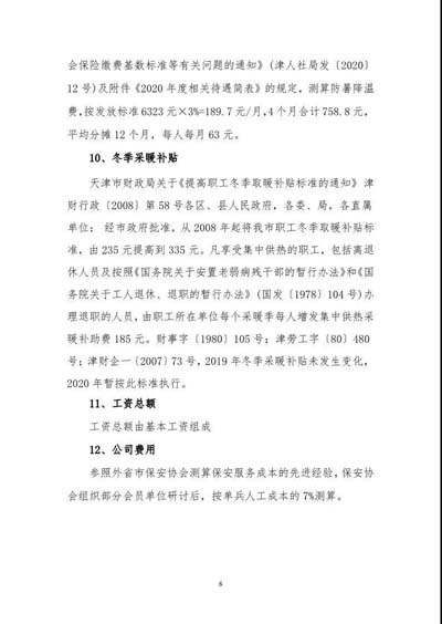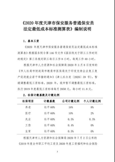 天津市保安協(xié)會(huì)發(fā)布《2020年度天津市保安服務(wù)普通保安員法定最低成本標(biāo)準(zhǔn)測(cè)算表》及編制說明。