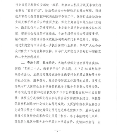 中保協(xié)會(huì)發(fā)布《關(guān)于組織做好保安行業(yè)主題日宣傳活動(dòng)的通知》